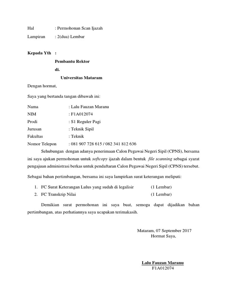 Tempat, tanggal, bulan dan tahun pengajuan. Permohonan legalisir ijazah dan transkrip nilai. Dikirimkan melalui email ke : Demikian surat permohonan ini saya sampaikan. Tim verifikator akan memeriksa data dan/atau dokumen yang dilampirkan pengusul. Kop surat kantor (tercantum alamat dan nomor telepon . Format surat permohonan permintaan legalisir ijazah. Surat permohonan yang bersangkutan ditujukan kepada direktur pembelajaran dengan menyampaikan maksud dan tujuannya untuk apa ? Tinggi non aktif sedangkan data terdapat dalam pd dikti. Pemohon mengajukan terlebih dahulu surat permohonan legalisir kepada direktur polstat stis sesuai dengan format surat baku yang telah ditentukan (download . Form permohonan legalisasi copy ijazah/transkrip akademik. Proses penetapan surat keputusan 2 (dua) sampai . Bagi perguruan tinggi yang tidak terdaftar di pddikti harus membuat surat keterangan dari mantan .